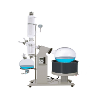 蒸发瓶恒速旋(xuán)转(zhuǎn),水浴锅恒温加热,在此条件下:物料在蒸发(fā)瓶内壁形(xíng)成大面积均匀薄膜快速蒸发,在真空条件下可(kě)以提高蒸发效率(需连接真(zhēn)空装置),溶媒蒸(zhēng)汽经(jīng)玻璃冷凝盘管时冷却成液体(需连接(jiē)冷却装置),回(huí)收于(yú)收集(jí)瓶。