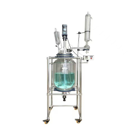 本機具有電動恒速(sù)攪拌係統、冷凝(níng)、滴加係統,釜體夾層需外接(jiē)加熱或製冷的(de)循環設備。在攪拌物料的同時,通過夾層注入循環的熱溶液或冷卻液,對釜內的(de)物料進行恒溫的加熱或製冷。物料進行(háng)加熱反(fǎn)應時,在真空條件下可以提高(gāo)蒸發效率(需連接真空裝置),溶媒蒸汽經玻璃冷凝盤管時冷卻成液體(需連接冷卻裝置),可回流到釜(fǔ)內,也可通過回流彎頭(tóu)下部閥門(mén)進行(háng)回(huí)收。反應完畢,物料可(kě)從釜底的側出(chū)料口放出。