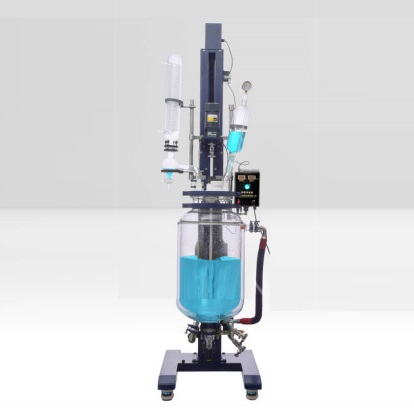 本機具有電動恒速攪拌係統、冷凝、滴加係(xì)統(tǒng),釜體夾層需外接加熱或(huò)製冷的循環(huán)設備。在攪拌物(wù)料的同(tóng)時,通過夾層(céng)注入循環的熱溶液或冷卻液,對釜內的物料進行恒溫的加(jiā)熱或製冷。物料進行加熱反應時,在真空條件下可以提高蒸(zhēng)發效率(需連接真空(kōng)裝置(zhì)),溶媒蒸汽經玻璃冷(lěng)凝盤管時冷卻成液體(需連接冷卻裝置(zhì)),可(kě)回流到釜內,也可通過回流彎頭下部閥(fá)門進行回收。反應完畢,物料可從釜底的側出料口放(fàng)出。